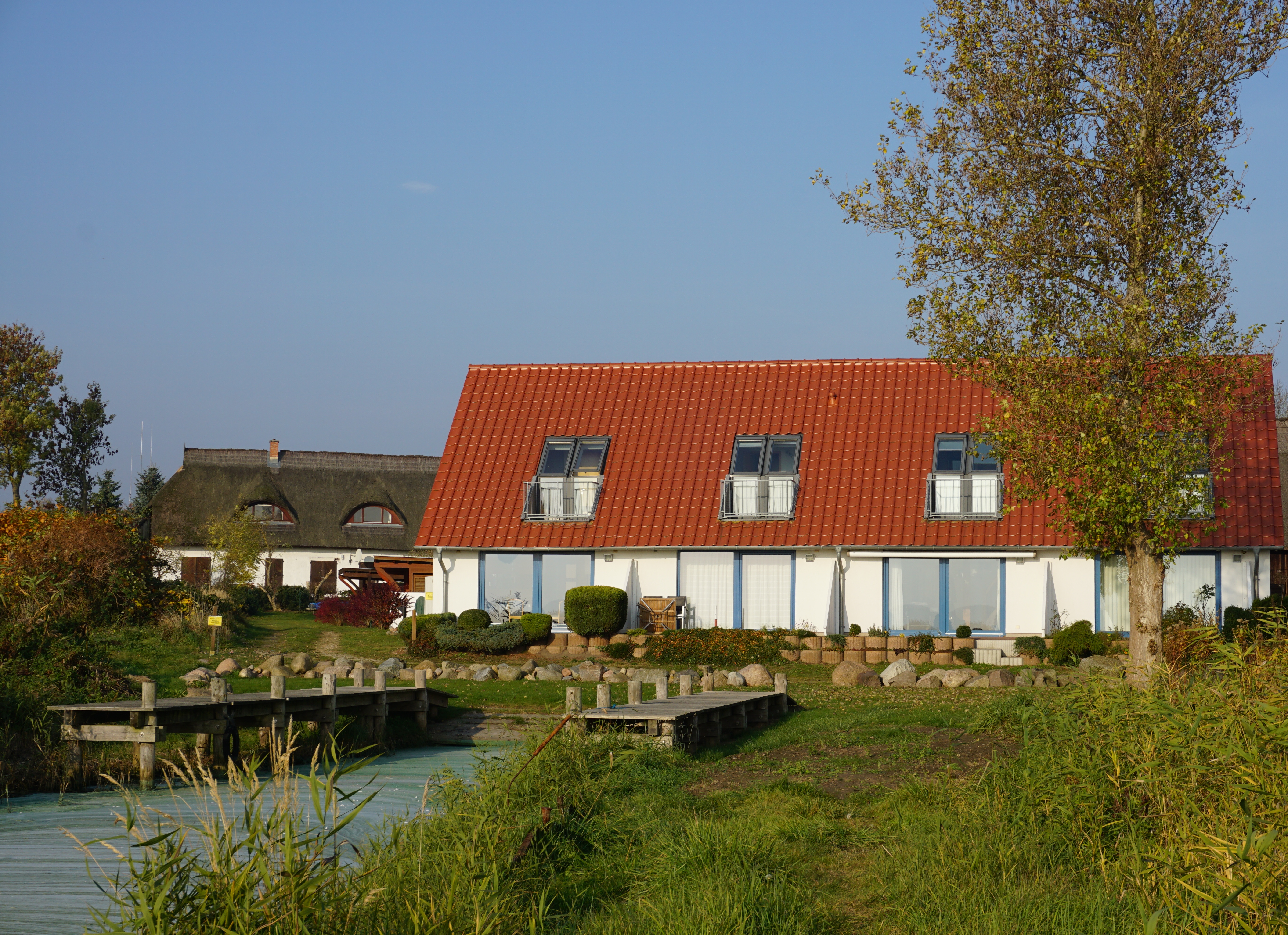 Ort: Neebergauf der Halbinsel Wolgast. Kleines, romantisches Fischerdorf direkt an der Krumminer Wiek. Ruhige, idyllische Lage direkt am Wasser. Badestelle mit Steg 300 m,